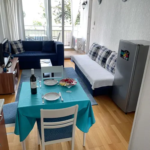 Apartman je uređen u plavim tonovima. Apartman može ugostiti 2 osobe . S balkona se pruža pogled na more.